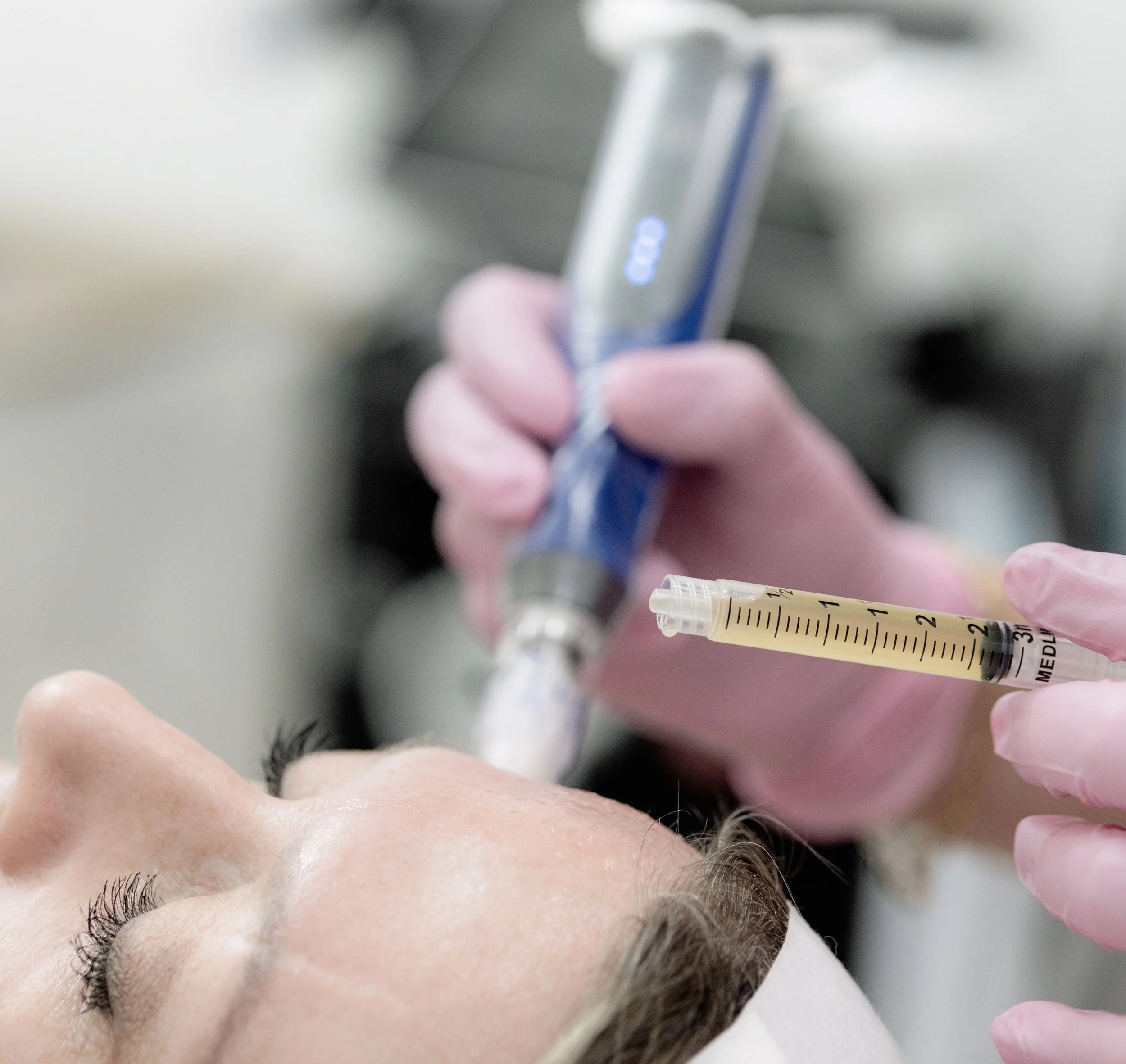 Enhance your skin's tone and texture using Microneedling, Aquagold, Platelet-Rich Fibrin (PRF) treatments, and VI Peel & Skin Medica chemical peels.